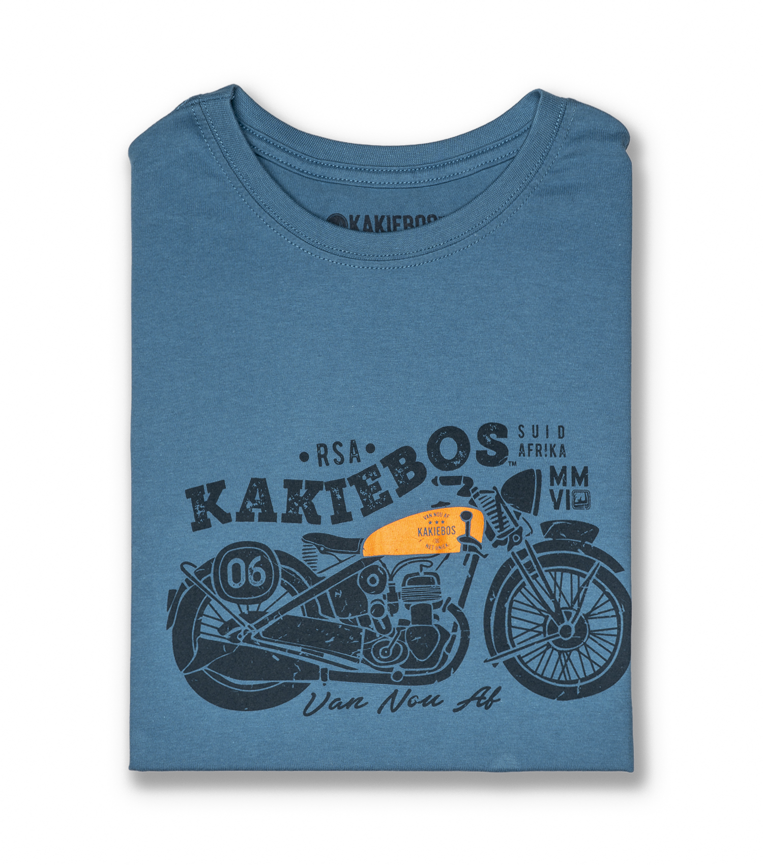 Vintage Motorfiets op diep oseaan blou. Wees maar reg vir die komplimente. Ons klassieke ronde nek T-hemp is oor tyd ontwikkel deur te luister na wat JY soek.
